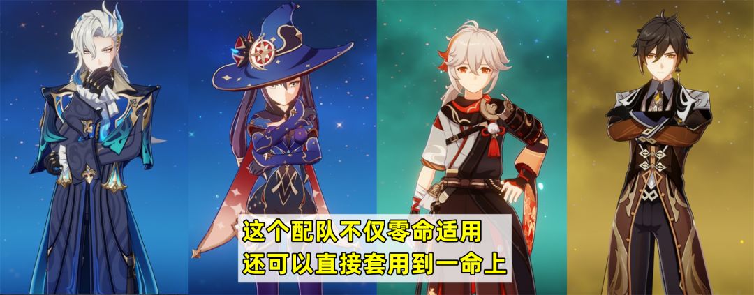 相比四色队,因为三色队带了双水,可以帮助那维莱特充能的同时,还能加生命,相当于也是一种增伤。加上莫娜、万叶、钟离都有增伤或者减抗相关的机制,只打水元素直伤的那维莱特伤害其实同样相当高。另外还有这个配队还有一个好处是,可以直接套用到有一命的那维莱特上。
