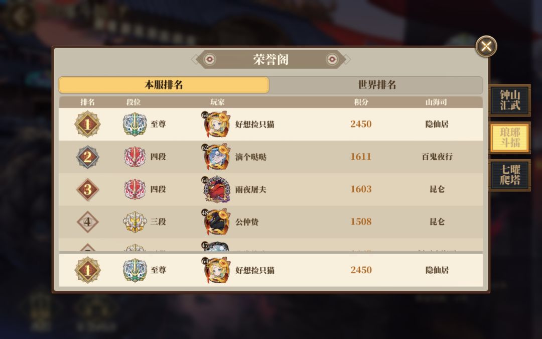 速度:1夫诸2天狐3常羲4天狗5共工6白泽