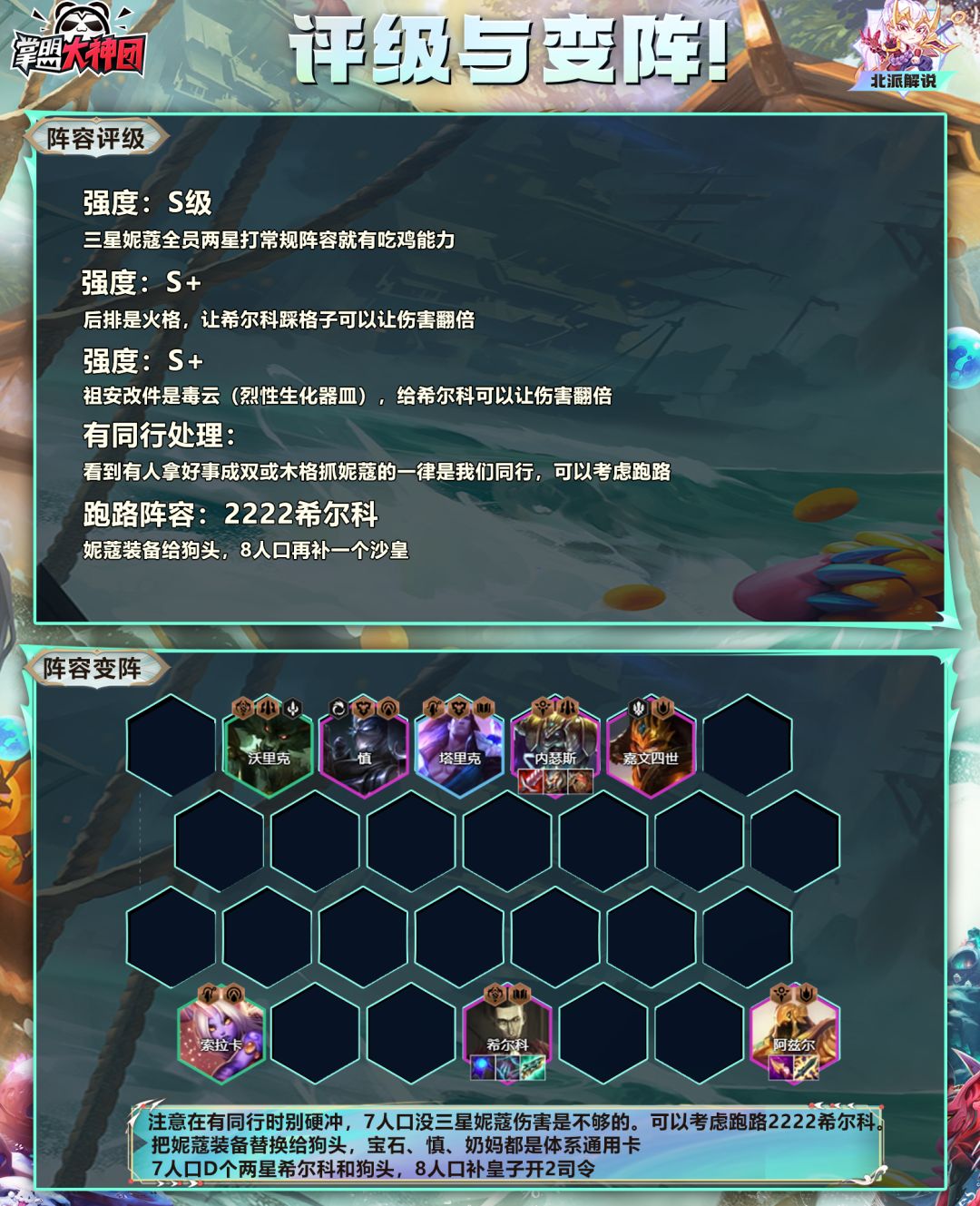这个版本妮蔻太强了,又肉输出又高。D出三星吃鸡率特别高。使用前一定看对局有无好事成双的同行。
