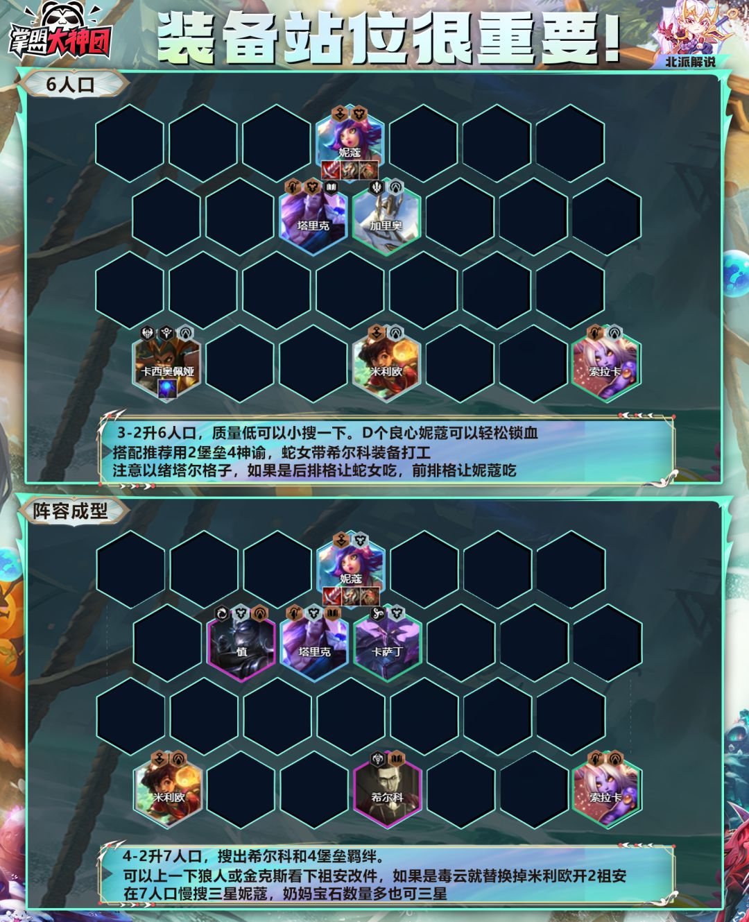 D牌节奏:在六人口D出两星妮蔻走连胜,7人口慢D三星妮蔻。奶妈宝石数量多可追。