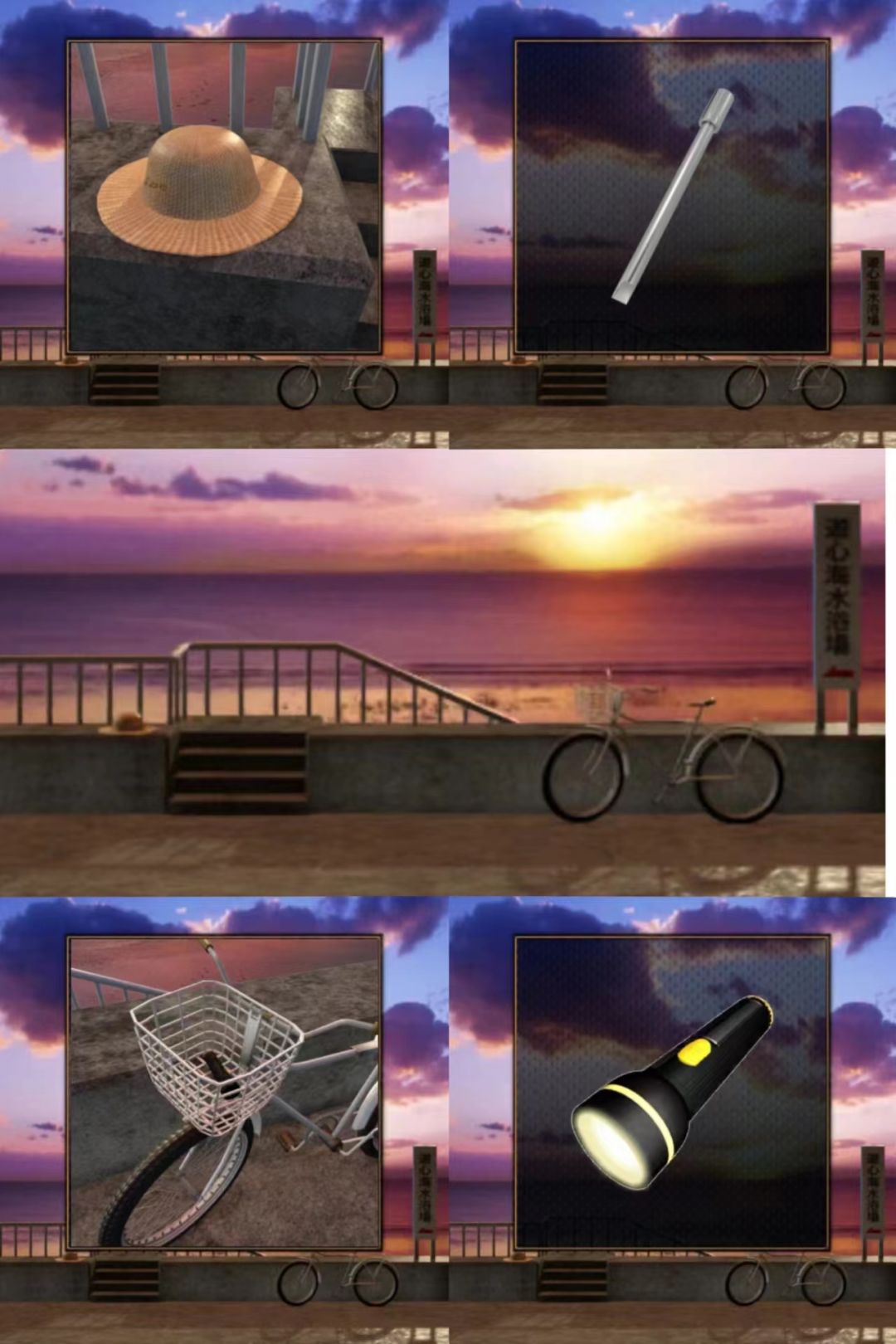 来到海边左侧 拿开帽子 得到螺丝刀的替换芯 给螺丝刀换芯 再去自行车车篮里拾取手电筒