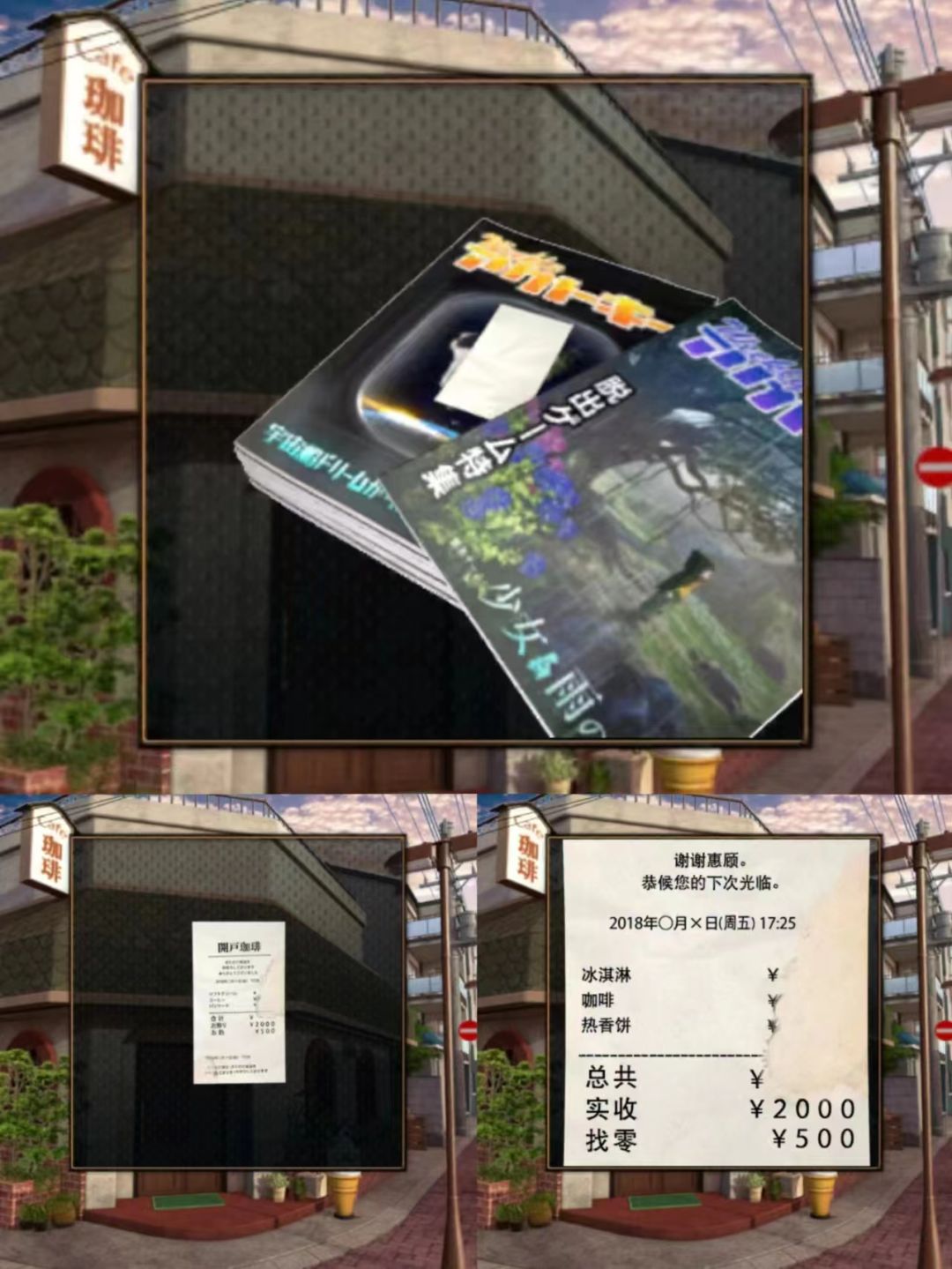 用剪刀剪掉绑着杂志的绳子 获得一张小票 小票上的三种餐饮价格和总价模糊了 看不清