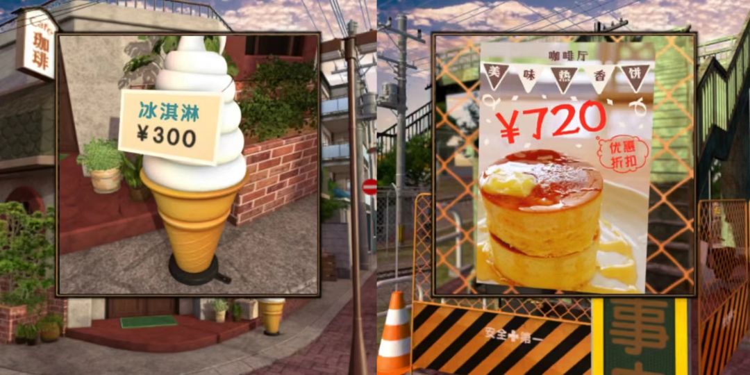 从收钱和找零的金额推算出三种餐饮价格合计1500日元 已知冰淇淋300日元 热香饼可以在人行道的施工牌上查看 得知价格720日元