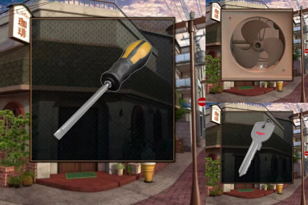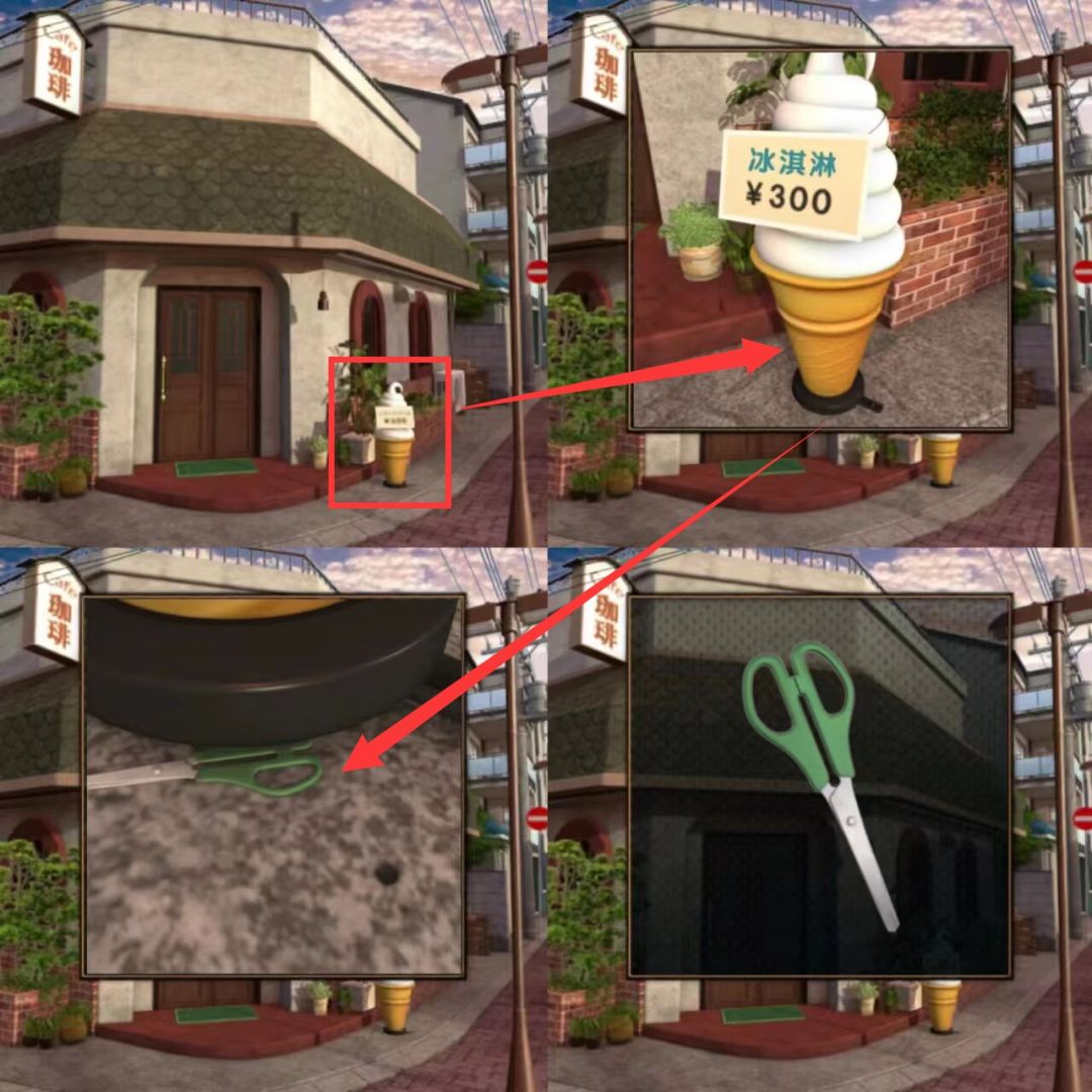 用螺丝刀拆下咖啡店前的冰淇淋摆件的螺丝 获得一把剪刀