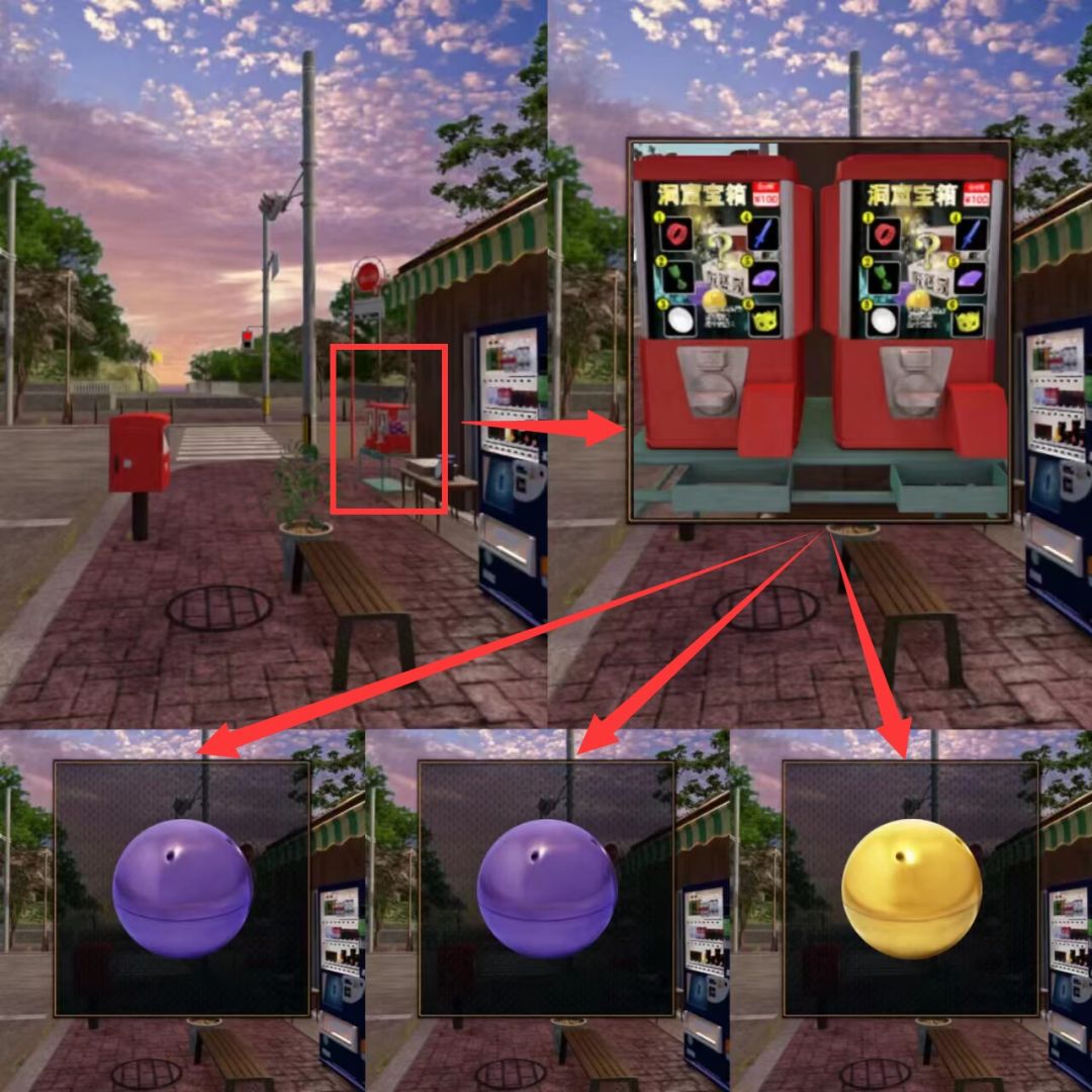 咕嘟咕嘟 真好喝 吃饱喝足 还有这么多硬币用来干嘛好呢 前面有两台扭蛋机 买几个扭蛋玩玩