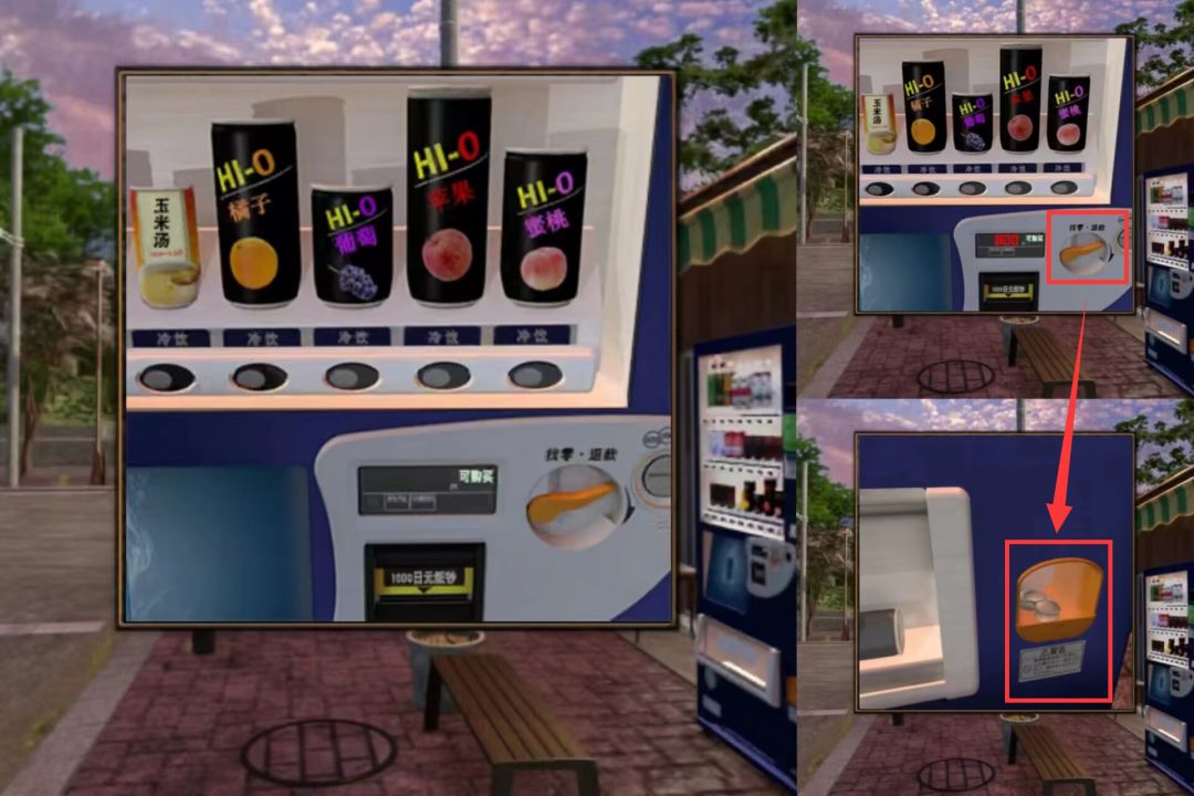忙活半天有点口渴了 去自动售卖机前买瓶水喝吧 我觉得玉米汁就挺好的(有零钱玩扭蛋就行 饮料买自己喜欢的 一定记得找回零钱!!!)