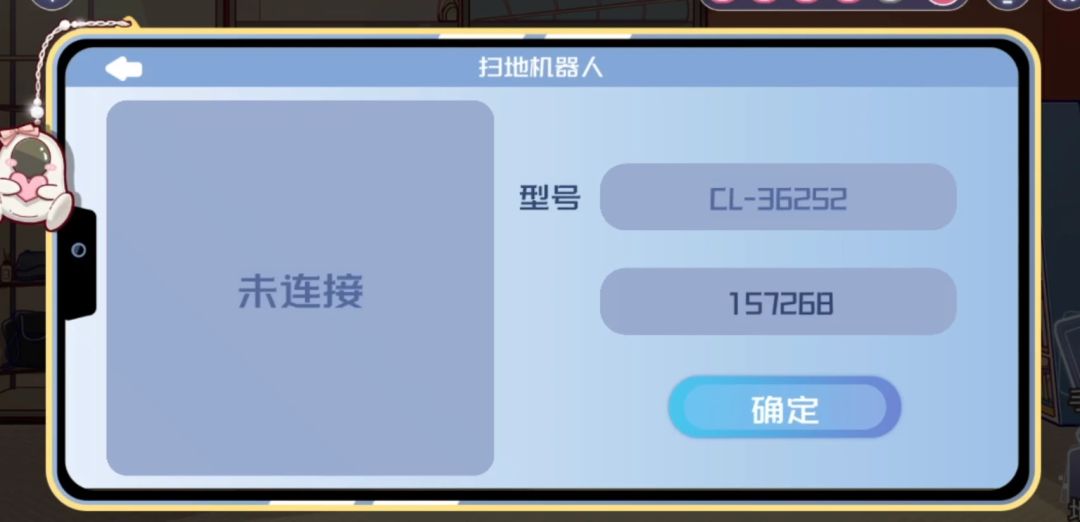 整理完成后拿到行李箱,同时露出后面的扫地机器人,先查看一下机器人发现代码是几个圈圈,随手画个井字从上到下填入123456789,那么就能看出来这些圈圈的对应数字是157268了,打开手机选择扫地机器人,输入型号157268后点击启动,机器人扫出了一枚硬币。