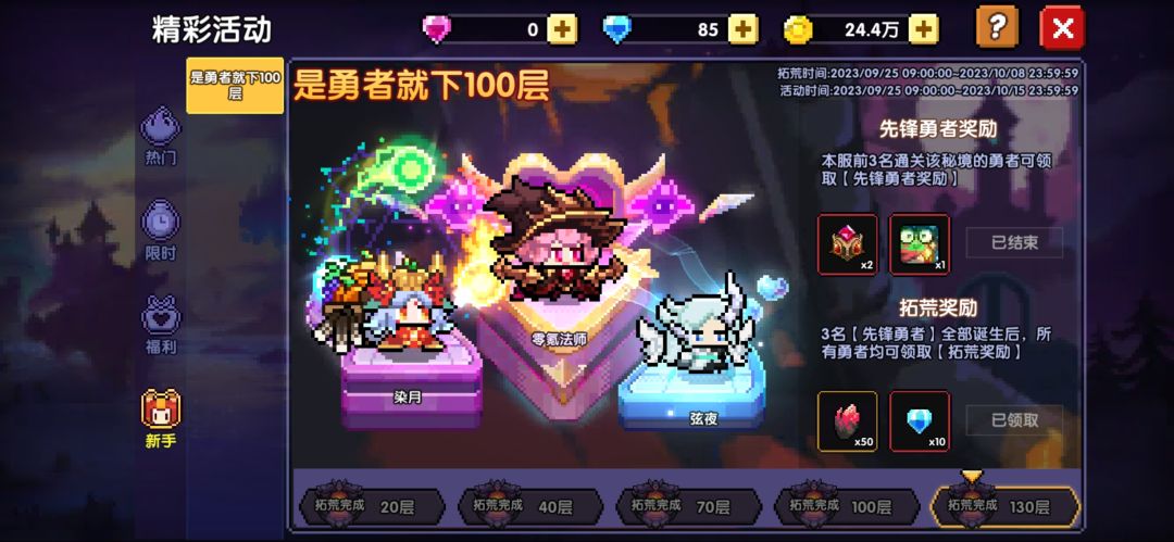 解锁了“新手100抽”“精彩活动”等内容,把能领的东西全部领取,也包括冒险等阶内容