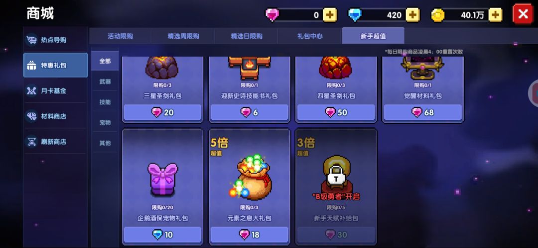 •最近几个大版本的更新,新手福利相较于以前有了更多的升级。