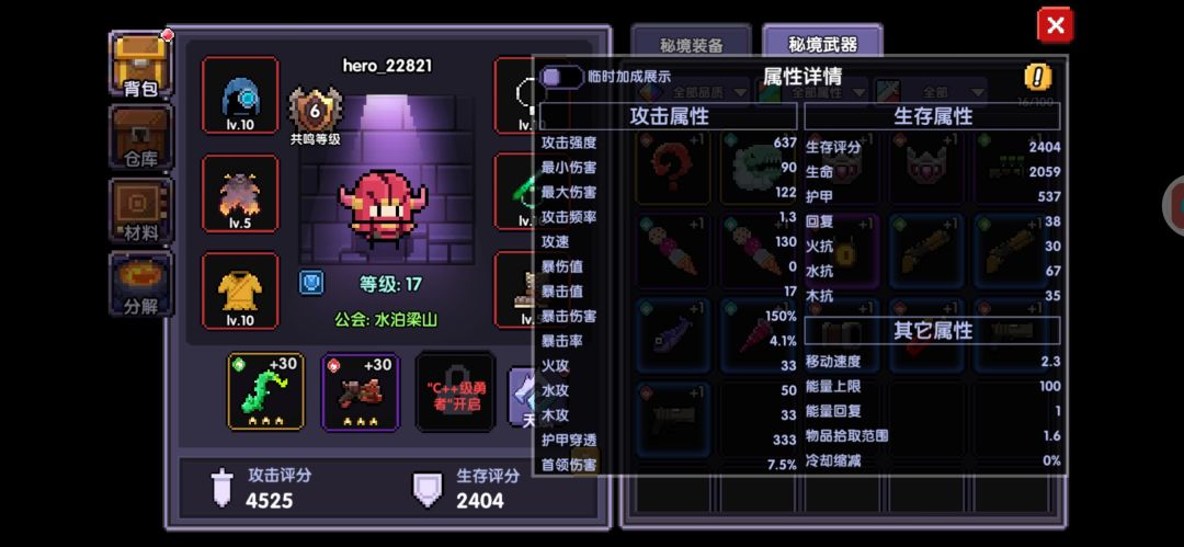 最终,打到了大秘境20层和小秘境35层,被强制卡进度了