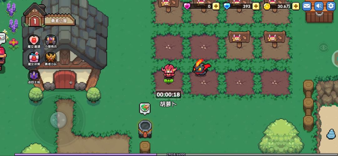 全部播种,并把30秒的胡萝卜收获,再播种别的,之后便可以退出小屋,之后再看
