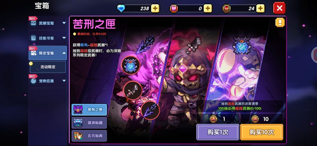(缺材料武器,可以用白银币抽,在普通宝箱抽)