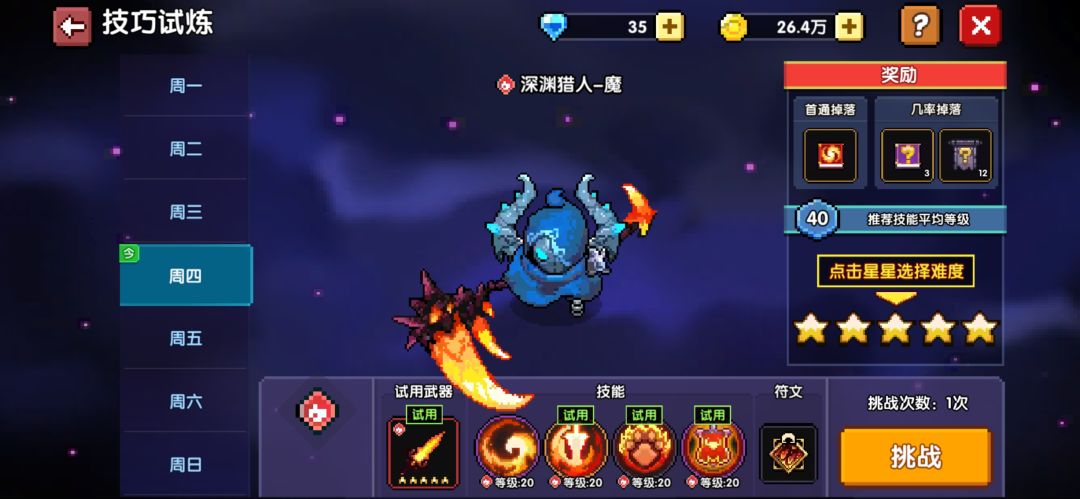 通过一系列操作,解锁五星难度,并且获取传说技能“烈焰风车”