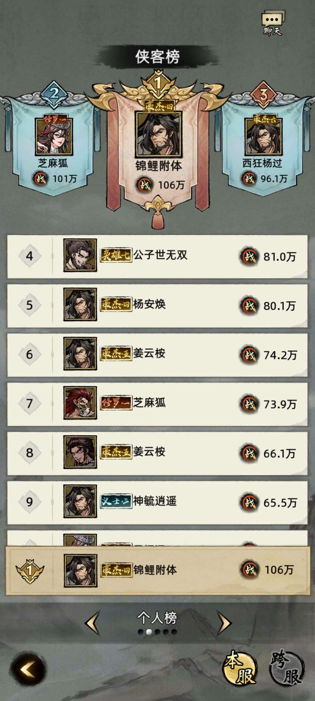 过节估计调整了爆率,比平时高一节,基本都是给两个。但还是架不住人少,我估计这个32服活人不超过5个。可能两个。第二名战力是快7-8天没动静了。