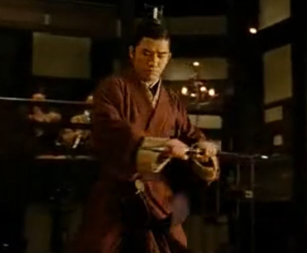 找到周瑜与剑的故事来源了,赤壁前的周瑜舞剑。目前找到最像的图是电影赤壁里梁朝伟舞剑,而这一版里舞剑是最短的只有区区几个镜头,红色的剑褐色的衣服,而且这里穿的是布衣
