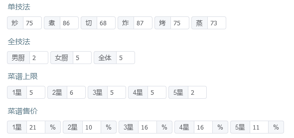 国际惯例的全员无厨具,修炼偏高,具体数值在P3。