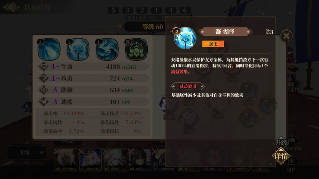 夫诸挂2技能不消耗灵气,冷却3回合,剩余灵气60,全员免伤盾外加全员驱散减益效果(面对对面有重明嘲讽直接能抵消全员嘲讽)