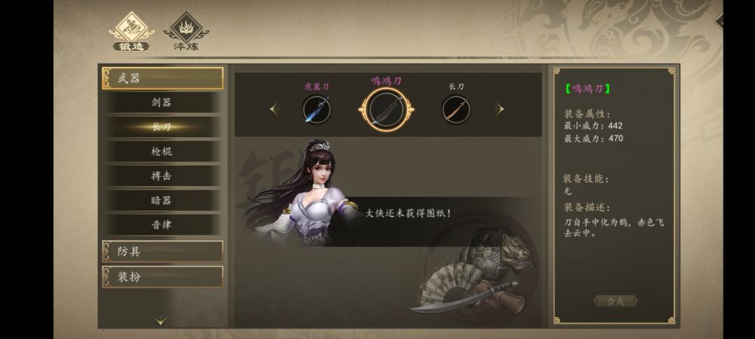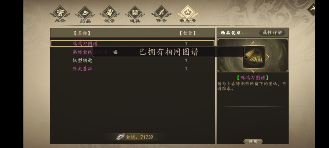 鸣鸿刀在之前行走商人那里买到过一份图纸,使用之后在铁匠那里显示要先过得图纸,后来做任务得了一张图纸,使用显示已获得图纸,但在铁匠处还是显示要先获得图纸。