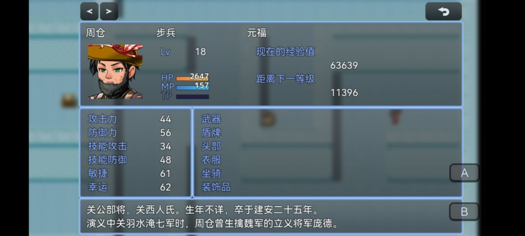 周仓,小许褚,高难度没啥用。能带关羽刀的守护将,但是用处不大。