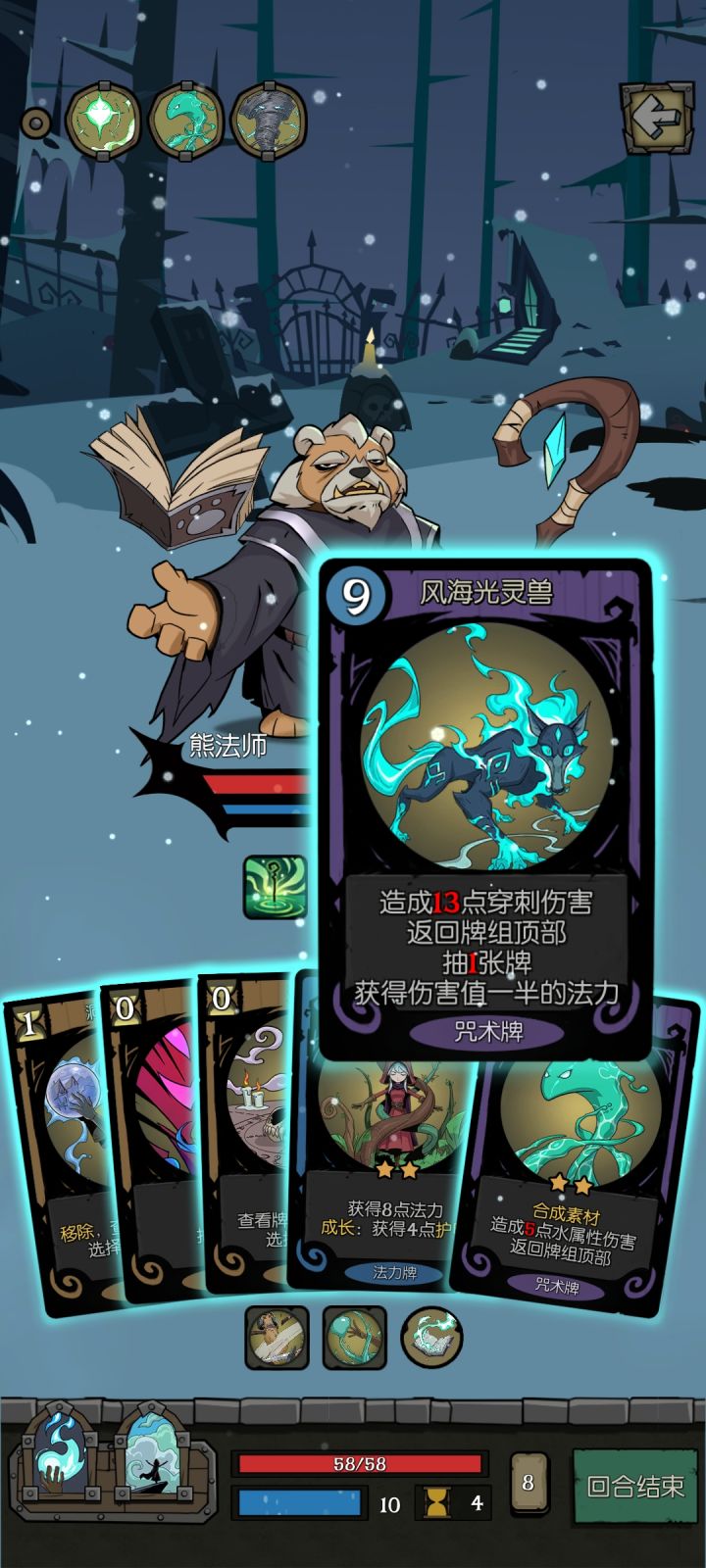 风灵打伤害抽牌,海灵打伤害后盖在牌堆顶,组合之后的灵兽可以无限回手,接下来只要考虑蓝耗问题,所以一般第三个带光灵(回复造成伤害一半的蓝)。
