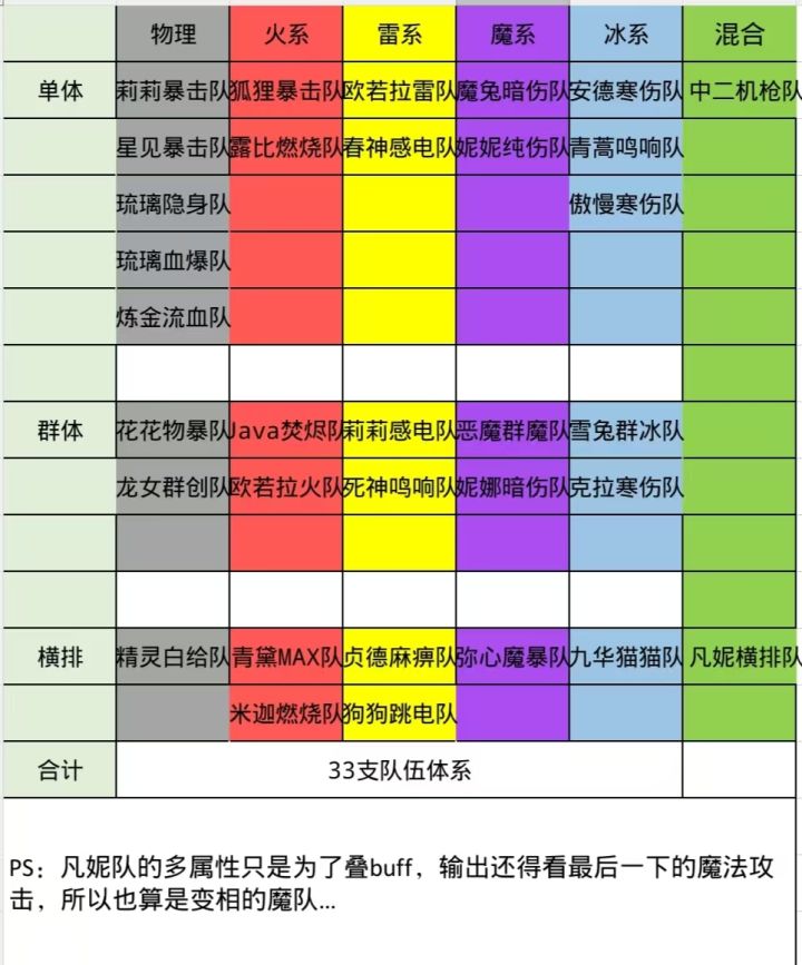 更新 33支队伍体系