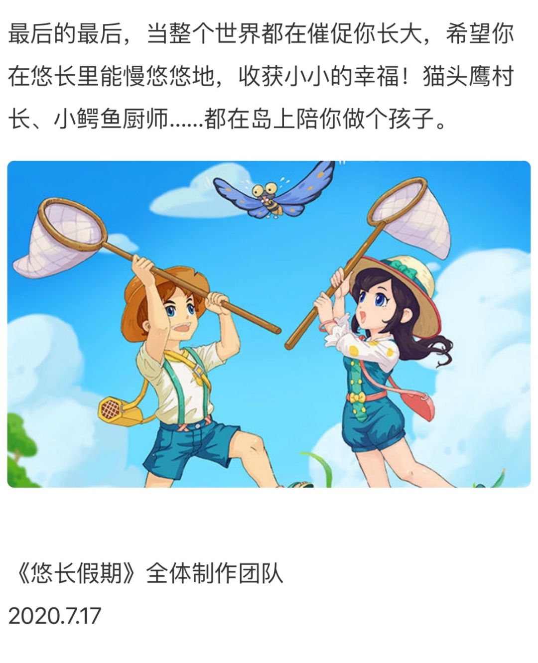 最后,再一次,真心感谢大家对《悠长假期》的喜爱和信任,我一定会鞭策大大们给大家带来更好的体验、更有趣的玩法的。希望未来的路,能与你们作伴,我们一起在这里,慢悠悠地当个孩子~(。・ω・。)