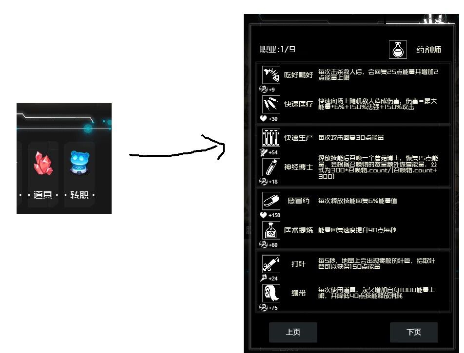 这些职业的内容和效果,可以通过主界面的转职,来进行查看