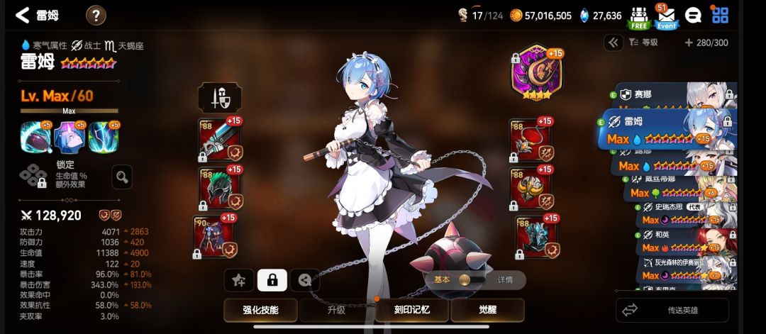 水13讨伐,昨天试了下用史哥,布里克,蕾姆,木奶打过了。史哥愤怒和激流套。布里克要60效命中。蕾姆开局要右下角人头点下(蕾姆大招要留到第二面打boss时变4个小怪时开大)附上面板