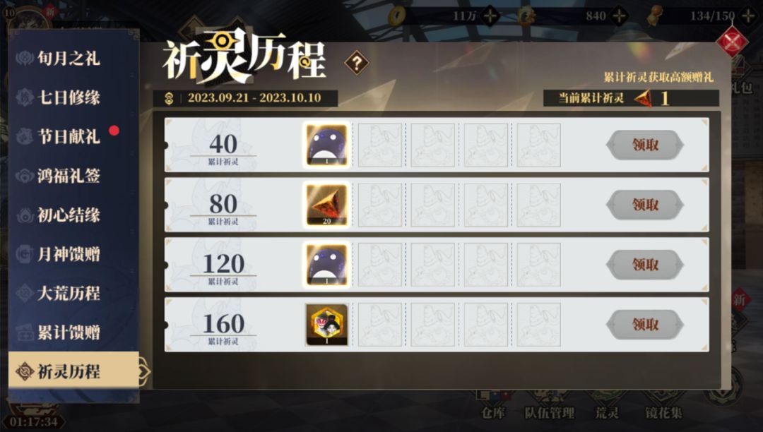 祈灵历程中,累计祁灵次数满80次还能拿到镜心x20,这条件不是轻轻松松就能达成?(想想邮件那220个镜心,我已经迫不及待了!)
