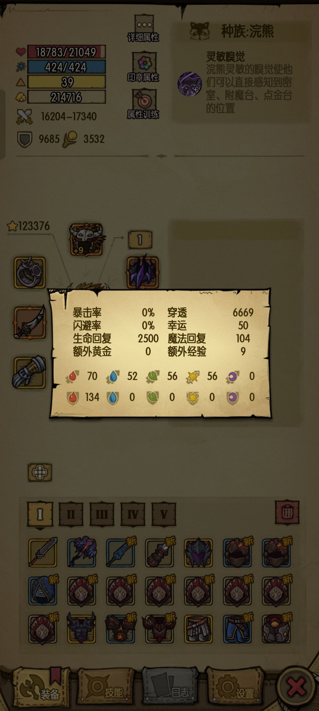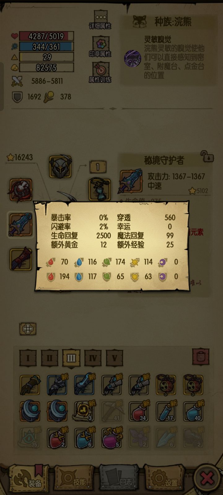 第三点就是装备了,前60层我没弄,捡捡金色就过了,主要是魔力,然后开盾刮痧。