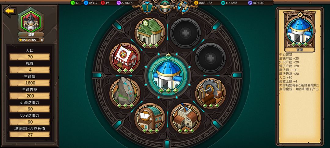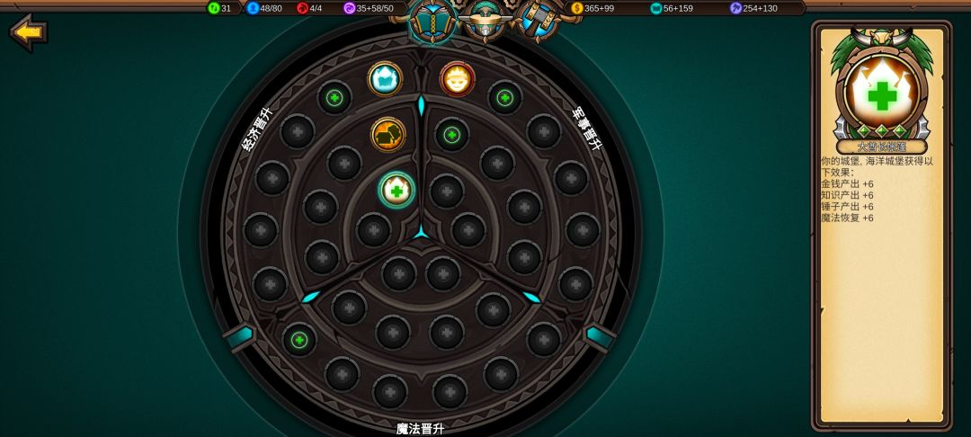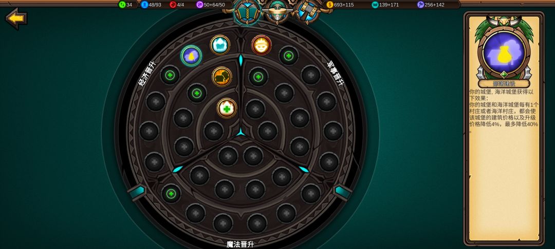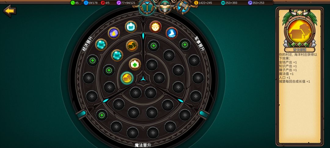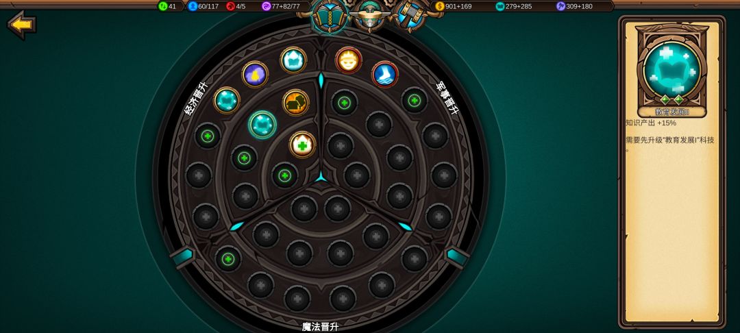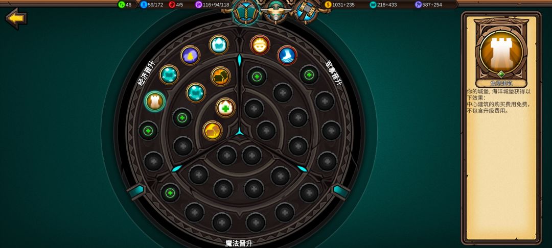 点出免费建筑,经济科技到处为止,接下来点魔法和军事科技