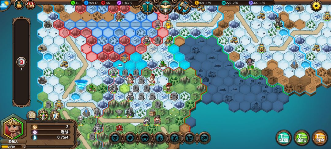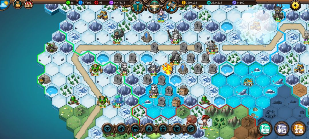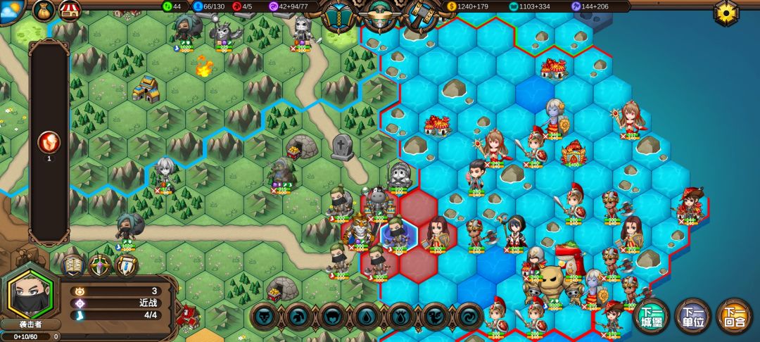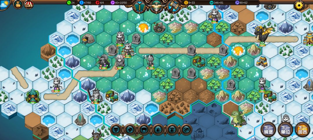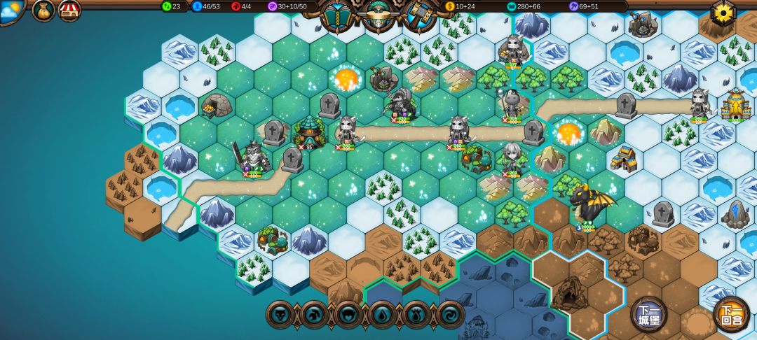 精灵兵刚出来,就被我吃满buff的穿山甲收了,下回合就能收下精灵的初始主城