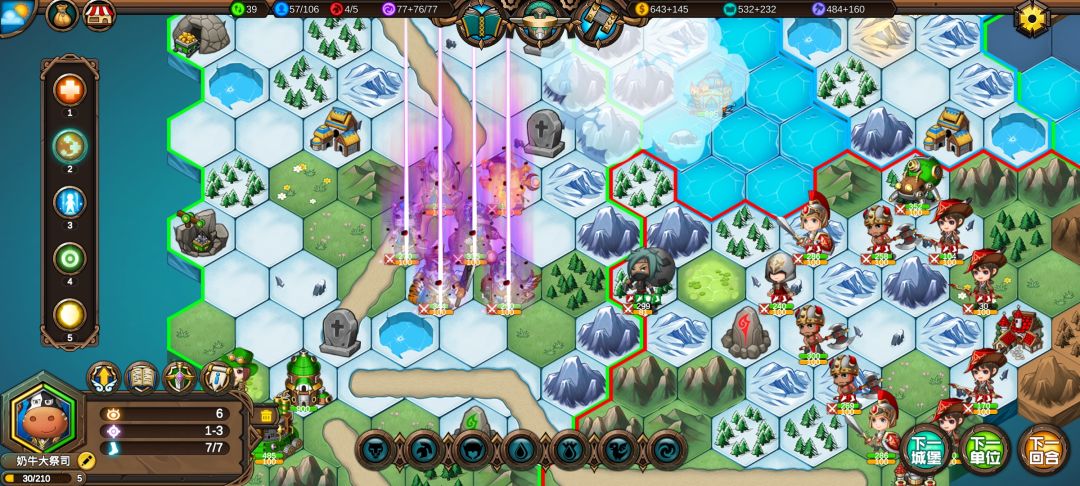 对己方6个单位用技能,全军出击!