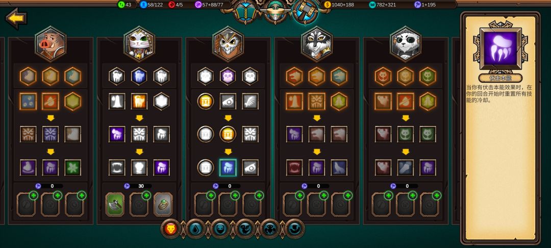 猫头鹰不平A就不会消耗伏击本能,科技点上拥有伏击本能刷新技能,这样就能每回合放时间诡计,侦查辅助一体