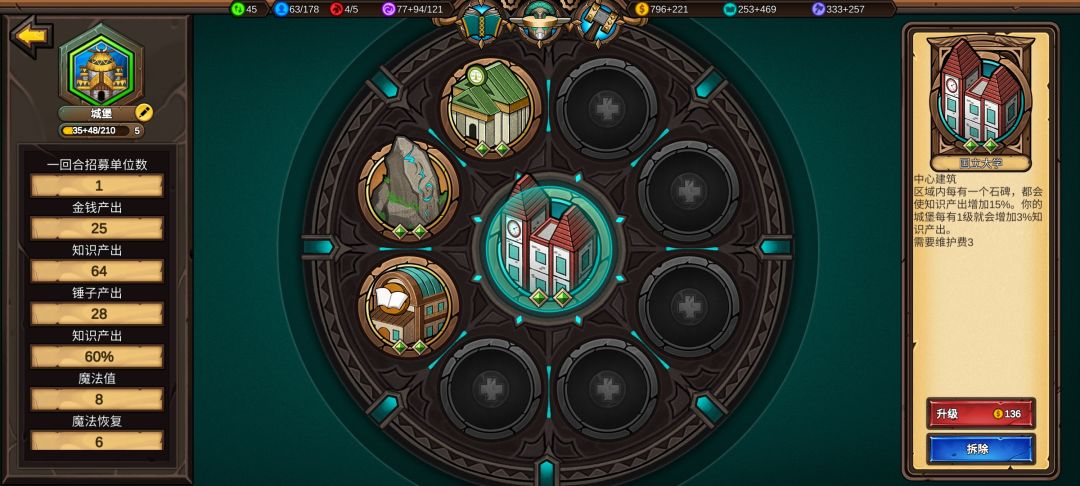 部落建设效果:城堡区域内每有一个村庄,减少该城堡内建筑价格4%,最多40%,建设流找一些多村庄的城堡大力开发