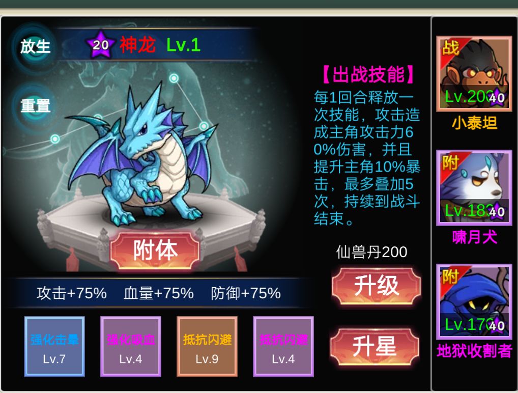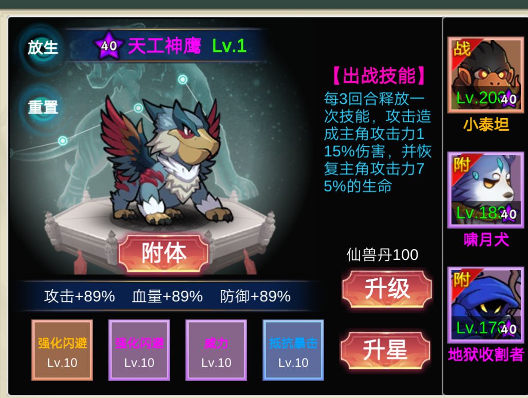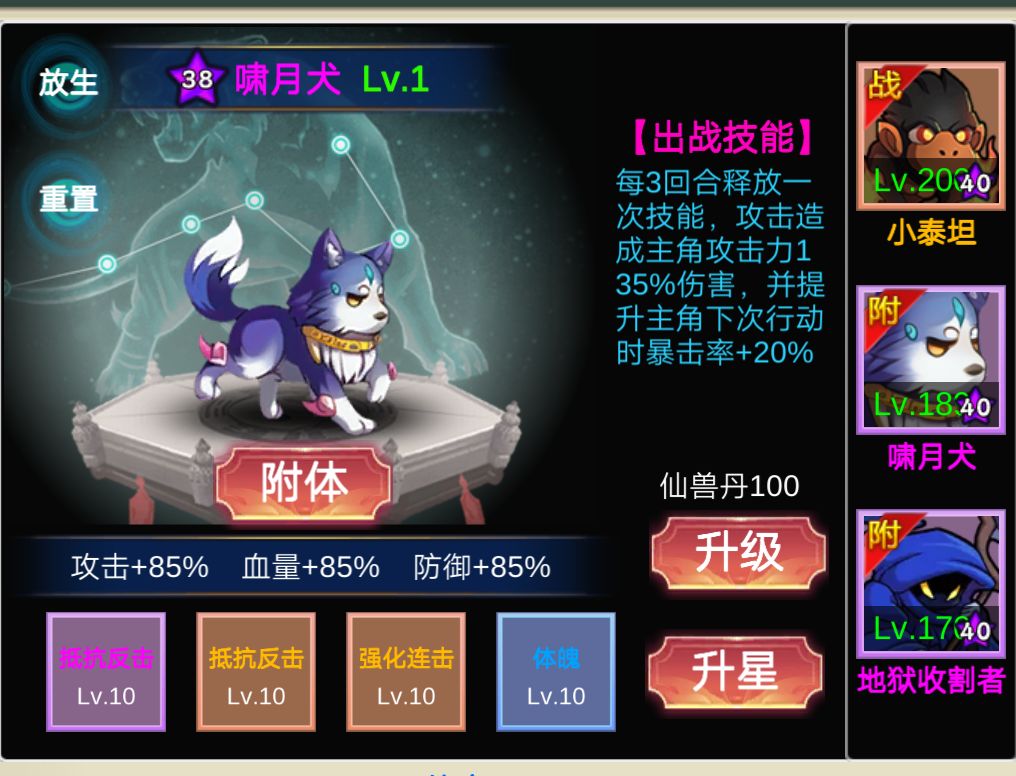 ①游戏后期本质就是宠物,战力差个一两亿区别不大,主要看属性,而属性的差距就是在宠物的词条上,每个属性养两三只基本游戏怎么更新都不怕的。