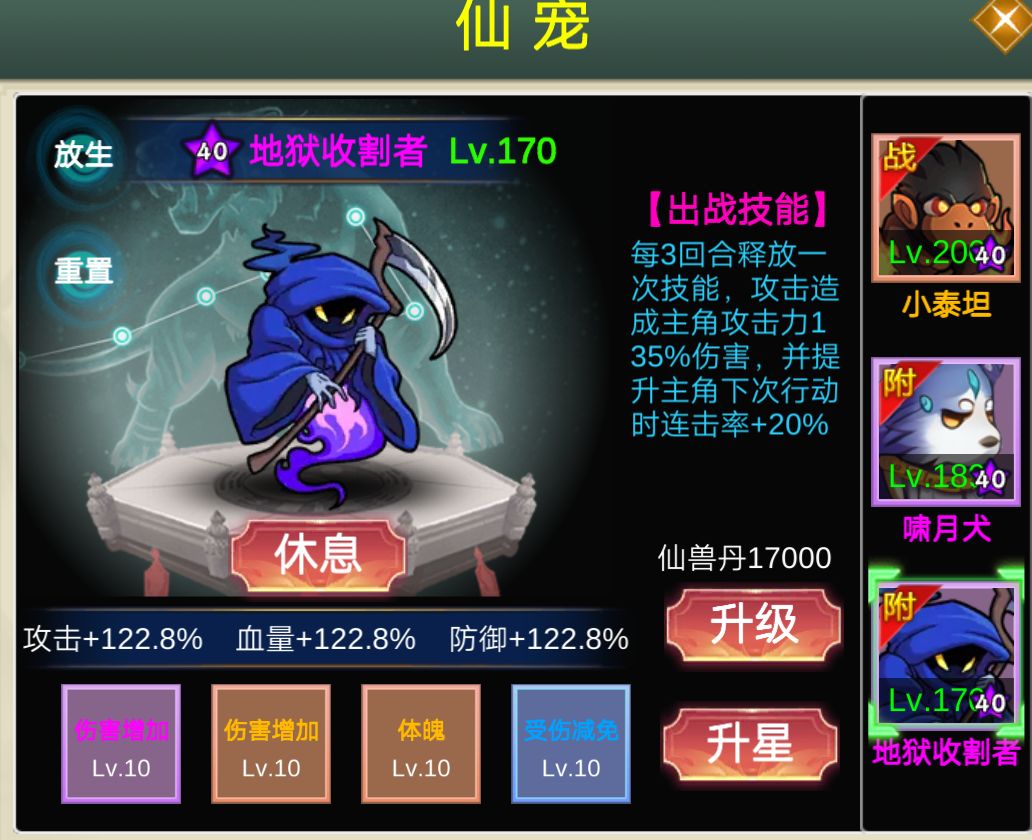 再者就是刷(刷宠物,刷心法);中间穿插一些试炼,封妖,符石召唤,种植这些就完事;