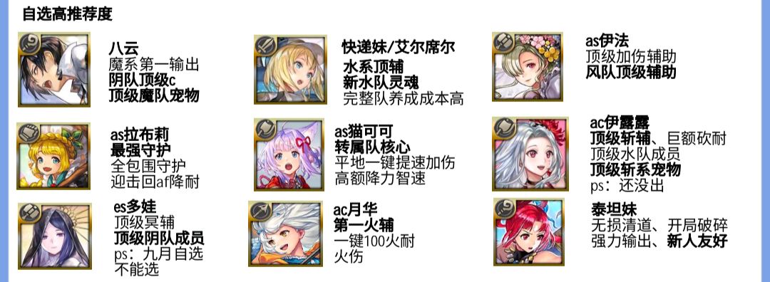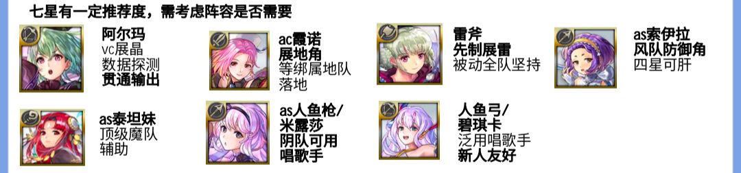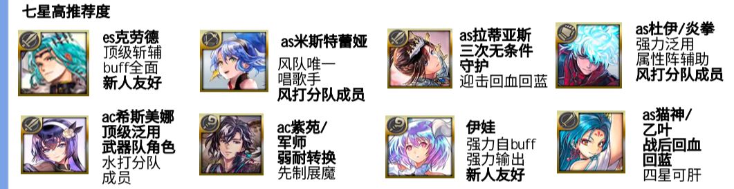 全文是个人主观推荐的角色,只涉及推荐度,上榜角色不代表当前七星可选,引用注明出处即可