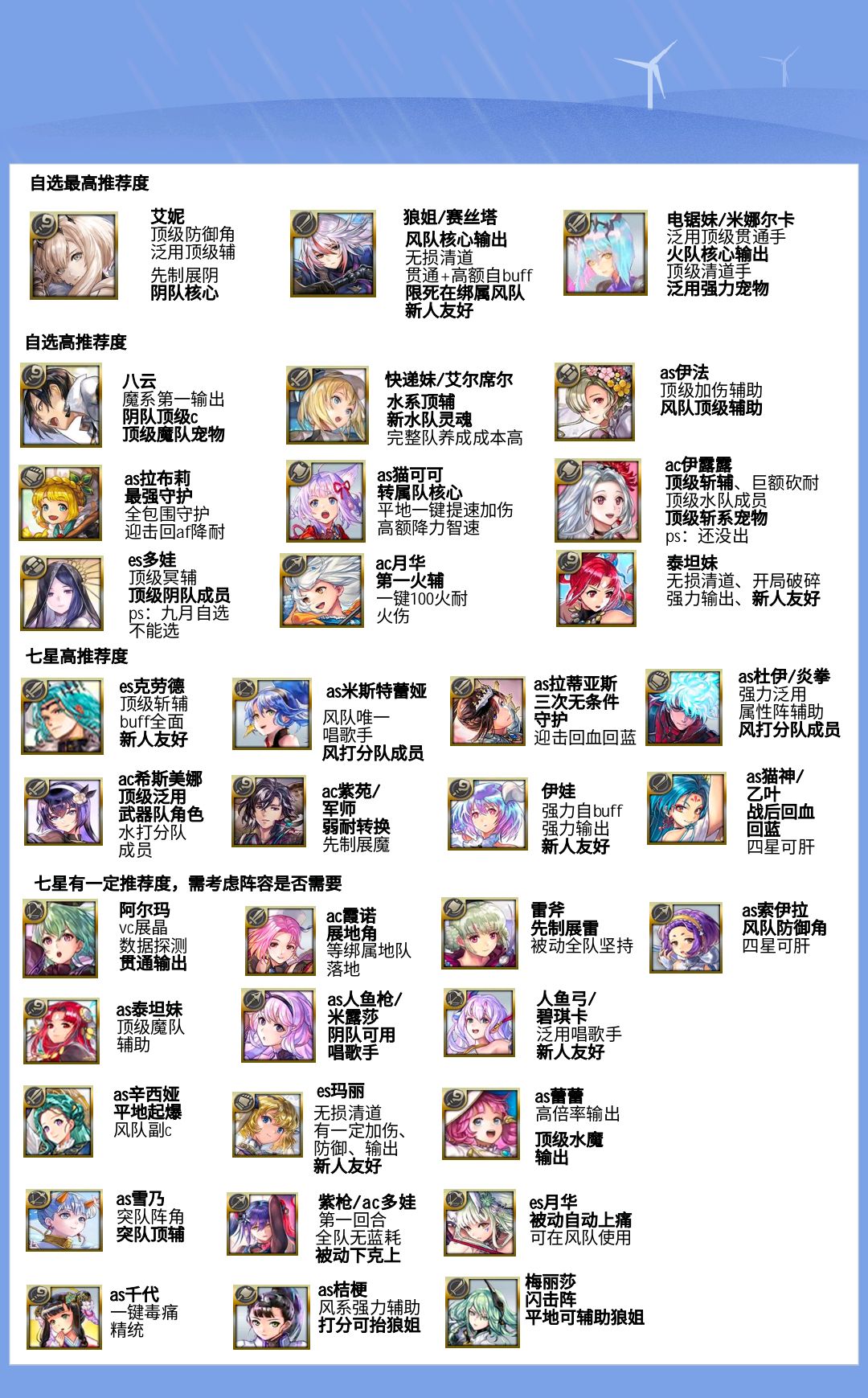 ④as索伊拉,纯风队唯一防护角,as绯奈1t平地庇护不了直接pass,狼姐真的抬人如麻,也是四星可肝