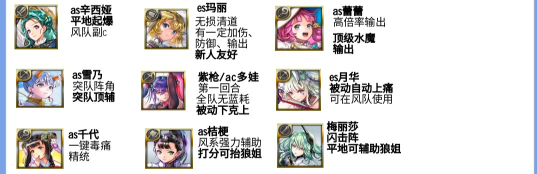 ②as晶弓,狼姐1t起爆虽然给不出加成,但是持久战风系指定唱歌手。自身技能组在打分可谓版本之女,因狼姐+打分大幅升温