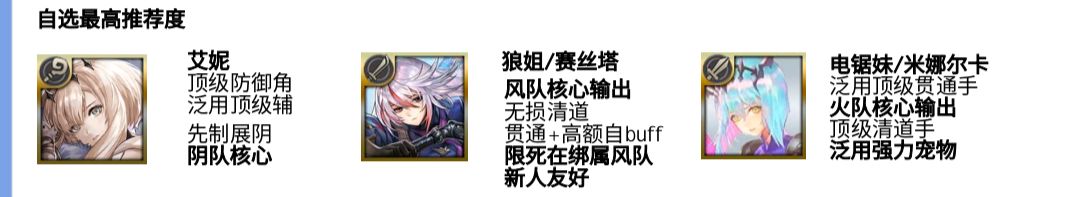 ①艾妮,结合日服情况,个人给第一自选推荐度,可以说自选就是拿来选艾妮的