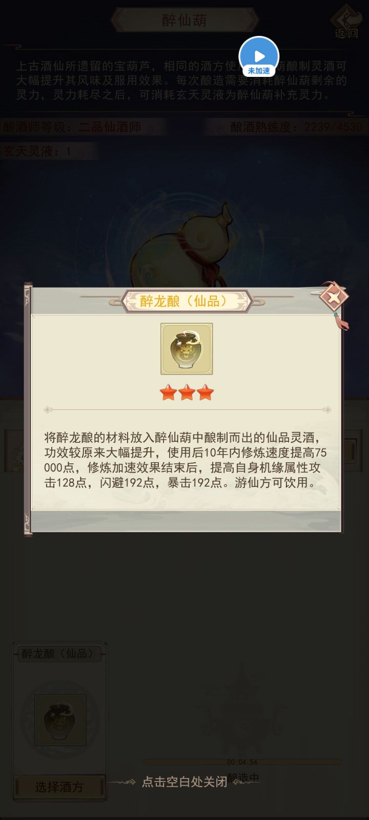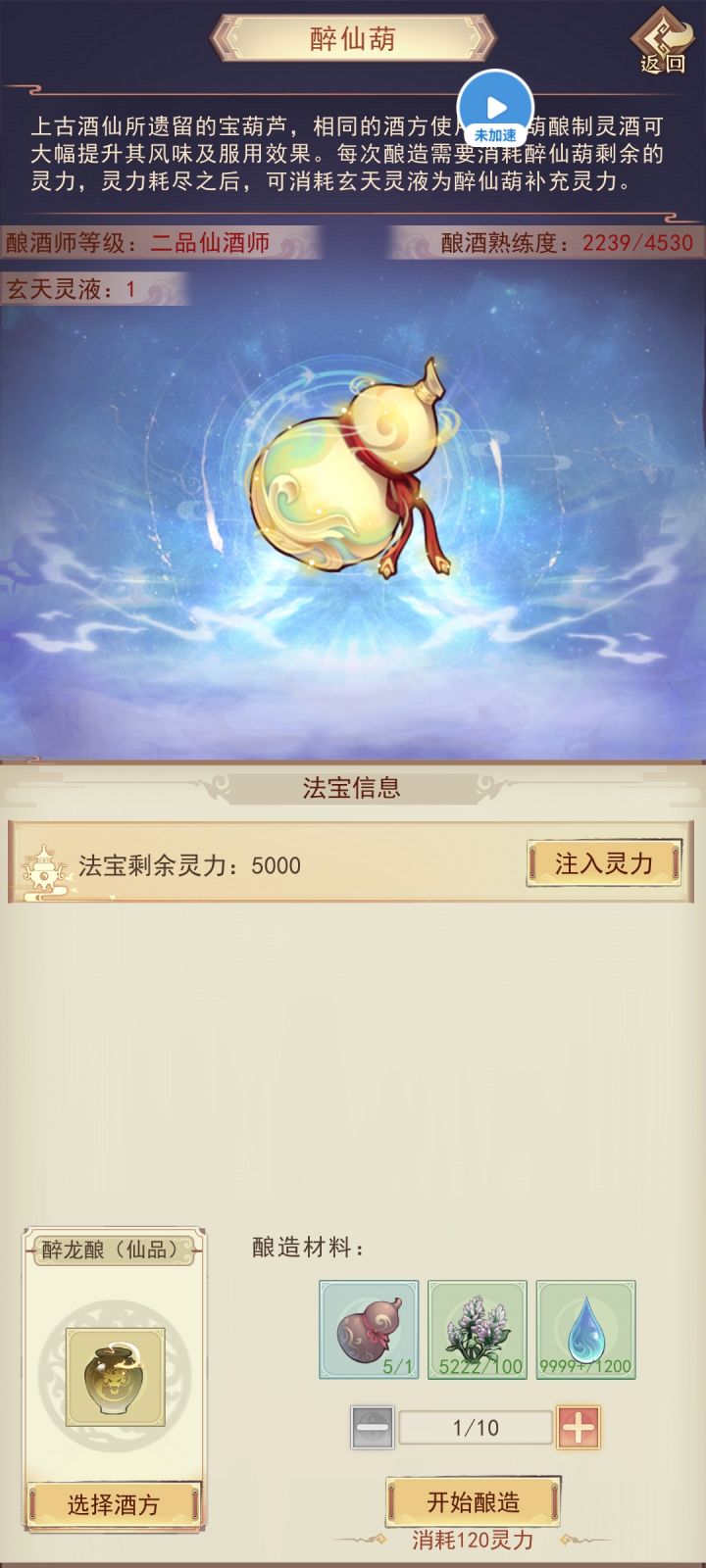 兑换后自带5000酿酒灵力,酿酒消耗灵力与获得经验相同。
