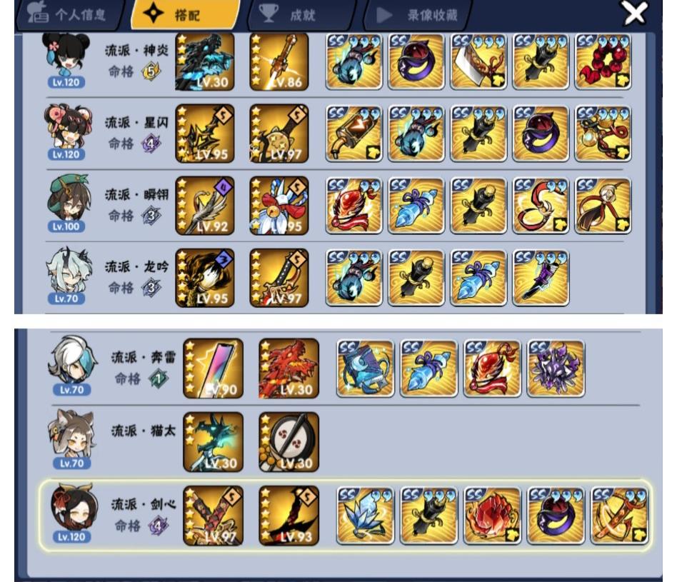 配置如上,目前不知道除了卫鲤该养哪个角色作为副角色,目前微氪党,也只买战令和神龙。伊鹤(差一大截四命)要不要到4命,星闪(差10几个碎片5命)