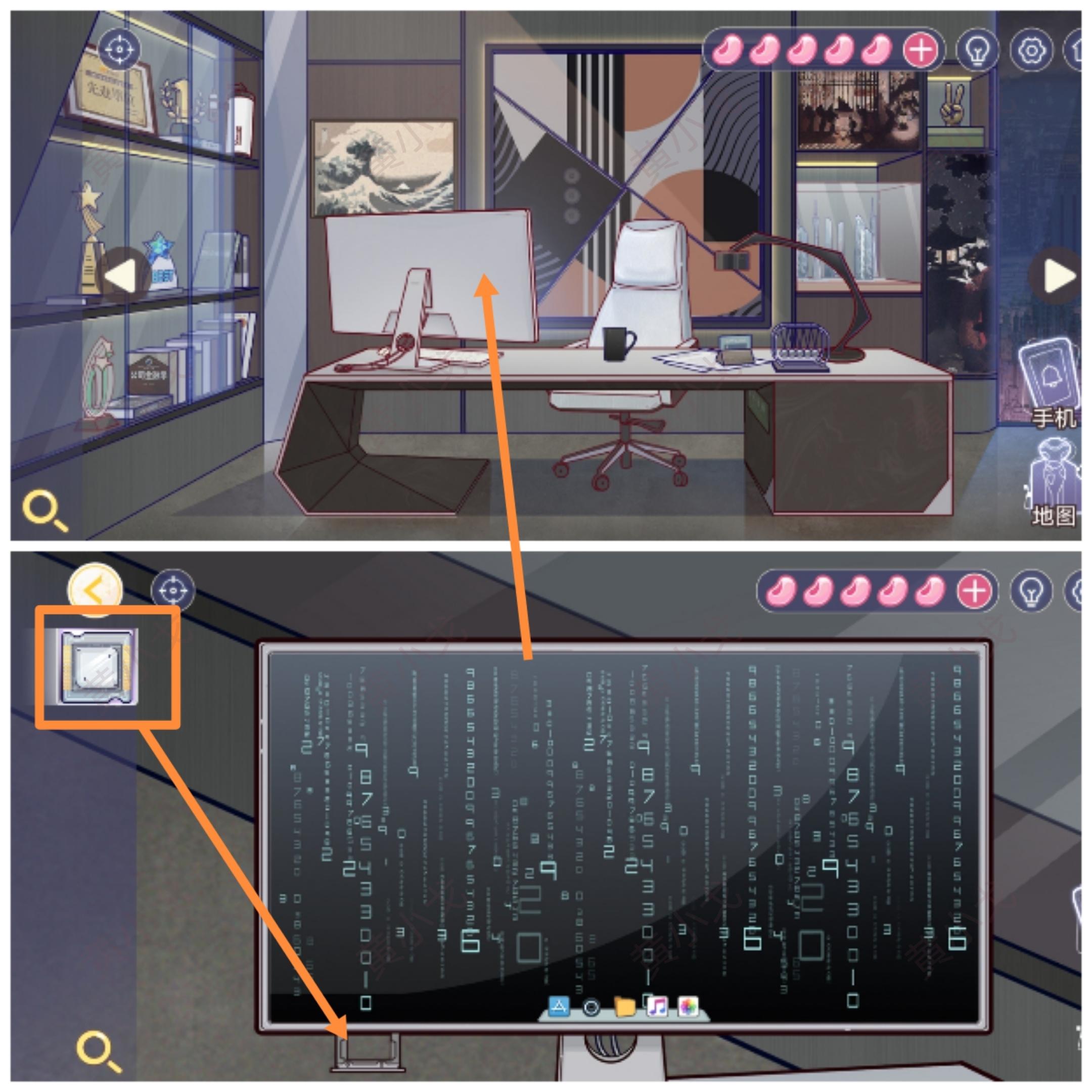 7.(办公室-办公桌)点击电脑,把【芯片】插入卡槽