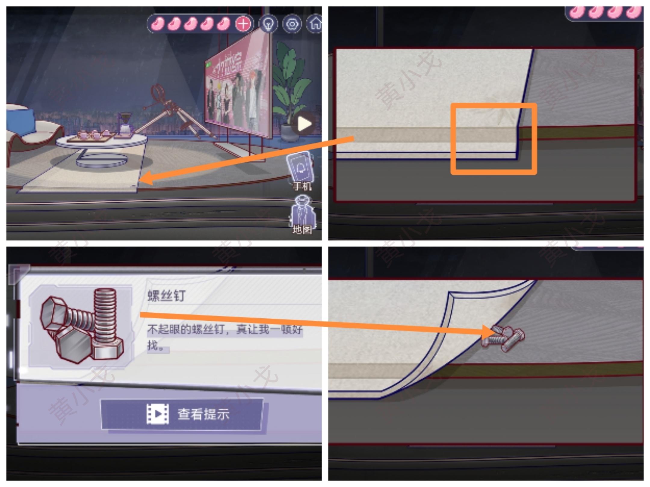 20.点击地毯右下角,掀开,获得【螺丝钉】