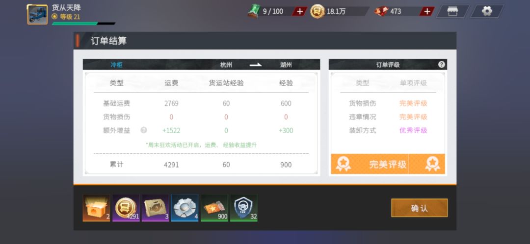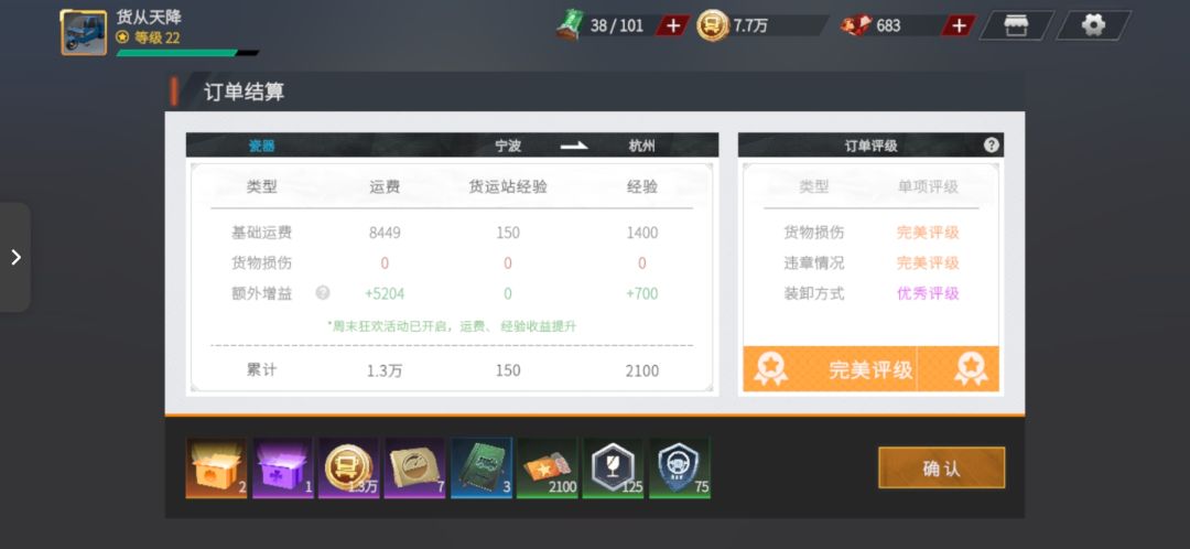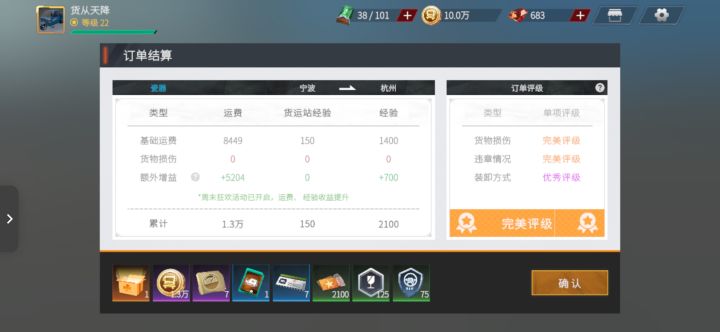 得益于热门订单的特殊结算机制,每一趟结算,最低都会给一个蓝色的钻石惊喜或者功勋礼盒!