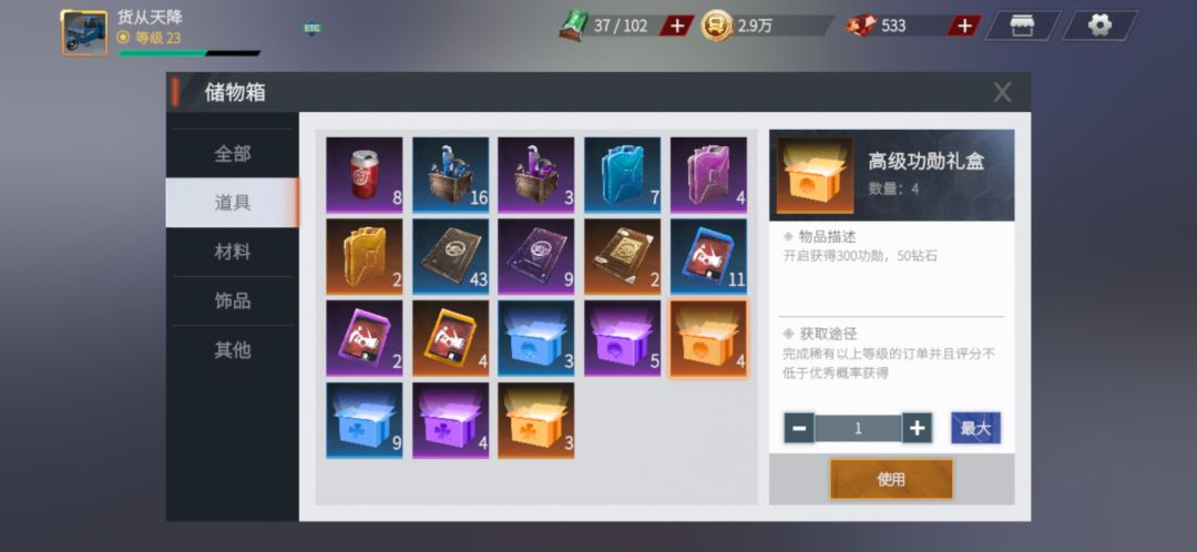 别人还在公屏吹水,一单长途上万真爽的时候,咱们的目光已经放在高级强化道具,功勋和钻石收益上面了!