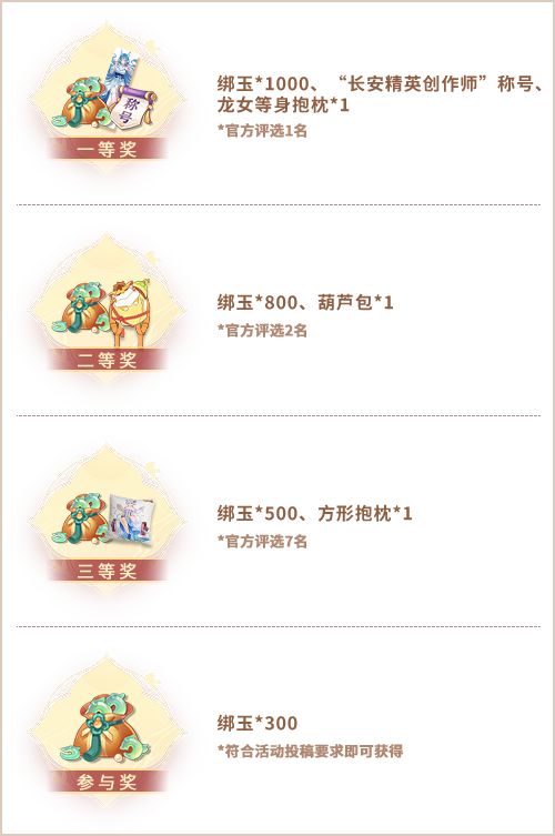 7、获奖名单和奖励领取方式将于公示期当天在长安幻想公众号进行公示,请及时留意公众号推文公示,并按时领奖,逾期则视为放弃获奖资格。
