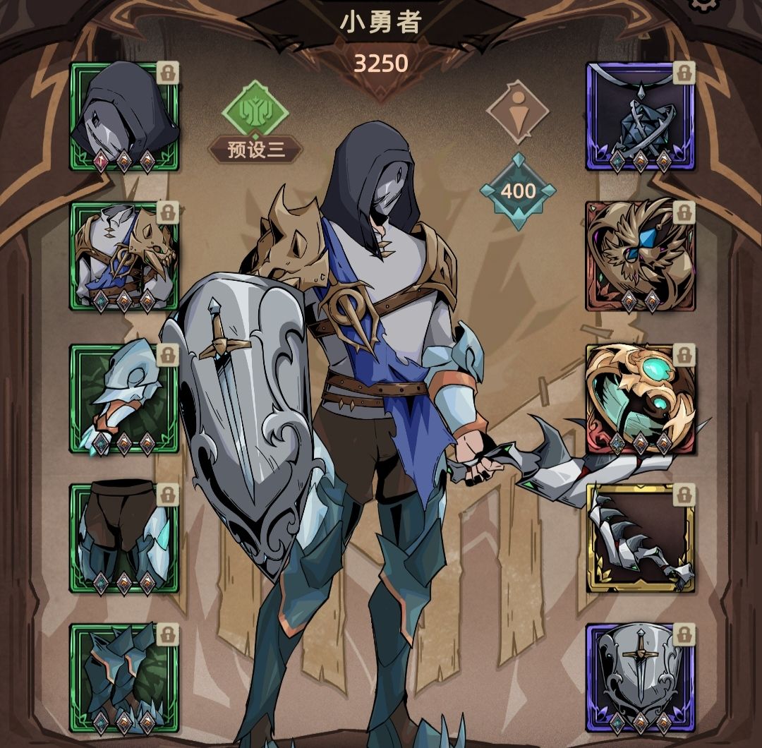 防具选择文明变革者套装,强悍的输出增幅远超本职业套装。剑术大师胸甲配合极限攻速,可以使骑士初级技能cd大幅减少,同时可以一直取消普攻动画,使普攻输出最大化。头盔选择隐秘行者头盔,可额外获得10%暴击。