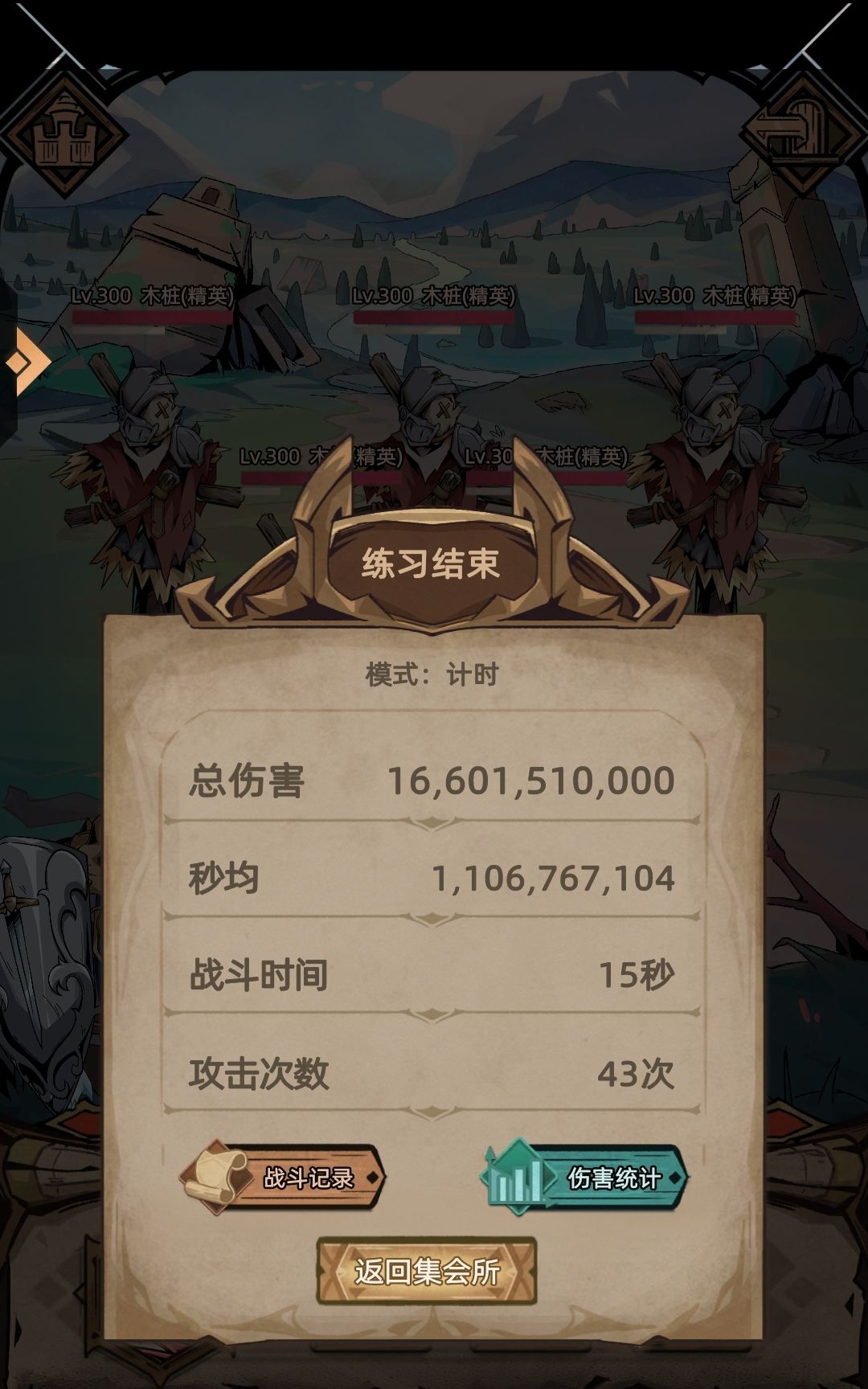 测试条件:等级300木桩×5,木桩开启攻击。